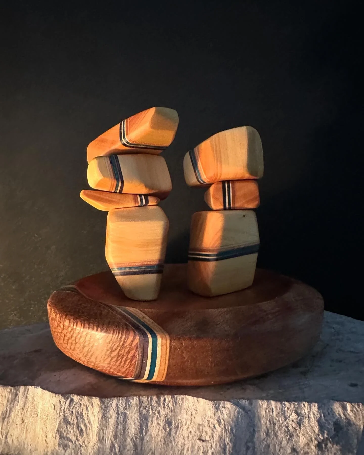 The base also features a laminated recycled piece of skateboard wedged between a piece of QLD maple and some macadamia